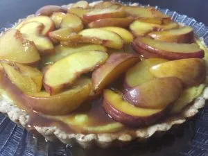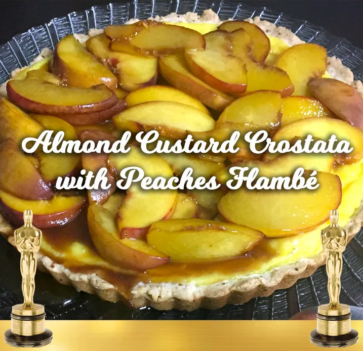 Almond Custard Crostata with Peaches Flambé