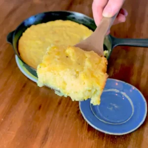 - Carefully remove skillet from oven and grease with remaining butter. Spread the corn mixture evenly in the pan and bake for 25-30 minutes, or until golden brown. Serve warm.