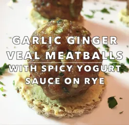 Garlic Ginger Veal Meatballs with Spicy Yogurt Sauce on Rye – 2017 Red Carpet Menu for Oscar®