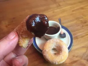 Cinnamon Sugar Cake Donuts with Chocolate Mocha Sauce