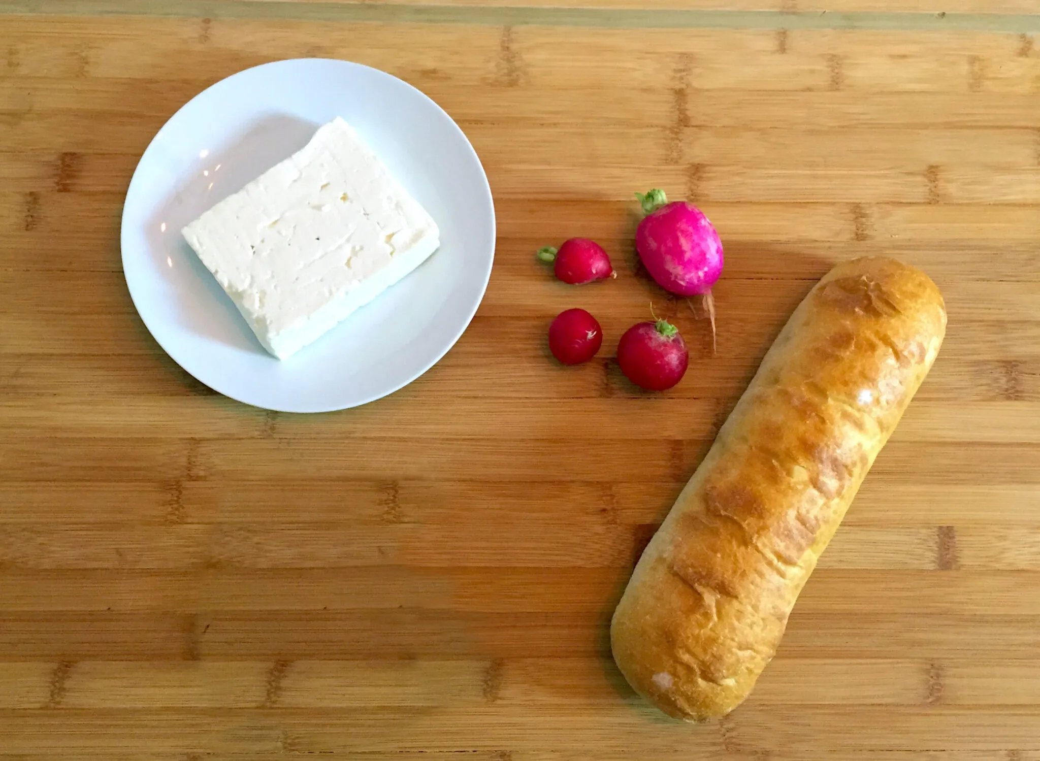- Spoon purée onto bread rounds. Add a layer of feta, then radish slices, and finish with some cracked pepper and a drizzle of oil. Serve.
