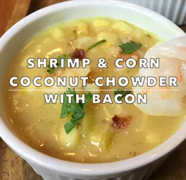 2) Stir in the stock, coconut milk, lime juice, corn, chili pepper, curry, salt, and pepper. If it’s thicker than you’d like, add a bit more broth or some water – taste and adjust spices. Bring to a boil then let simmer.