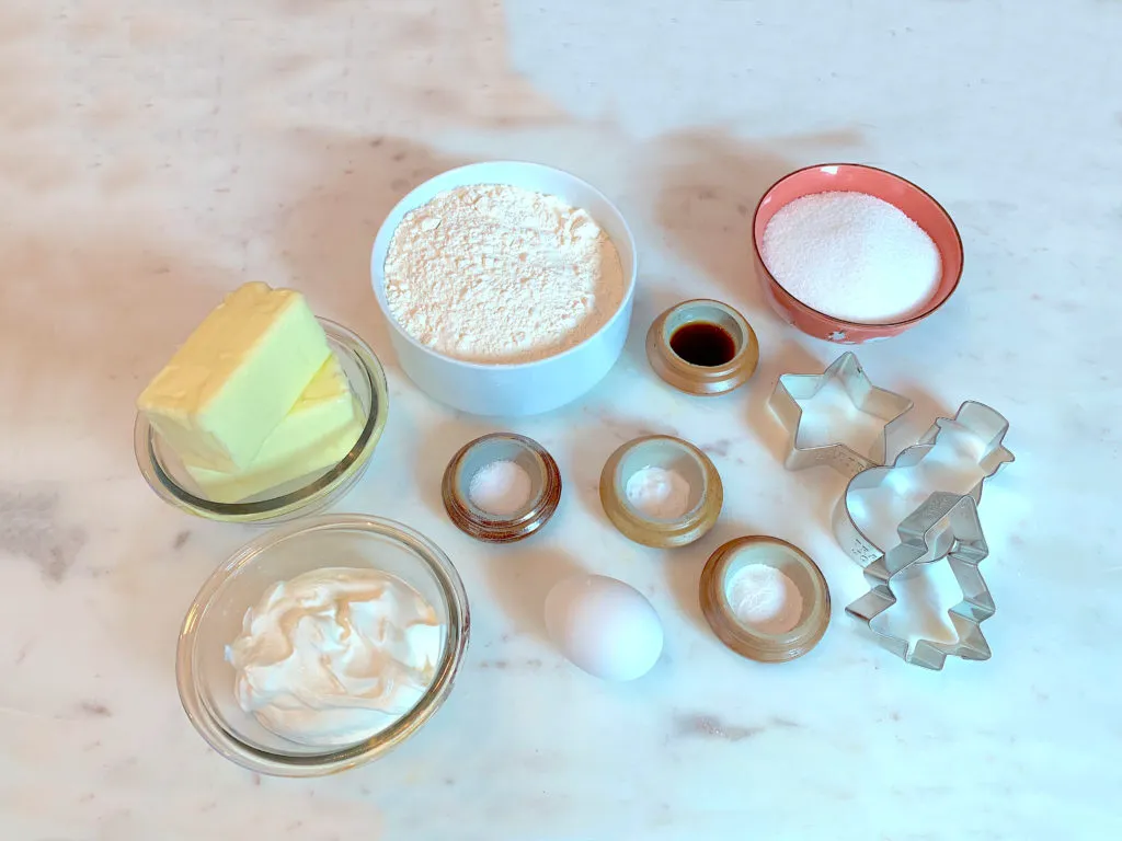 - Mix butter, sugar, and egg until fluffy. Add sour cream and vanilla, and mix. Mix in half the flour mixture, then the rest. Form dough into a ball, cover in wax paper, and refrigerate for at least an hour.
