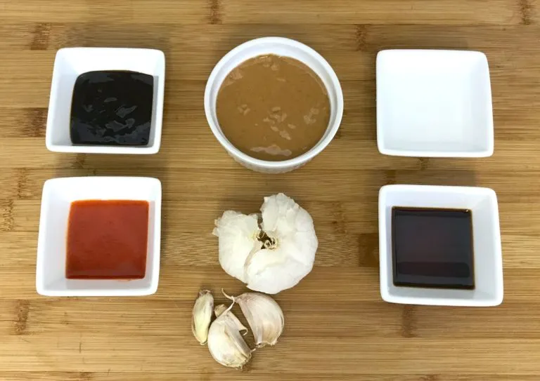 • Add peanut dipping sauce ingredients to a small bowl and whisk until well blended. Set aside.